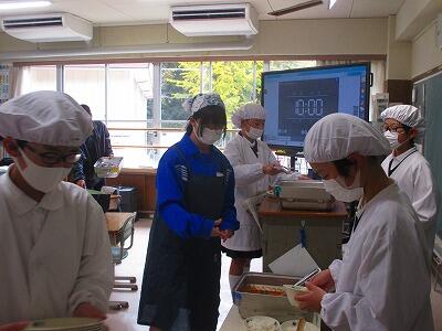 今後、完成したエプロンを使って調理実習に取り組みます。
