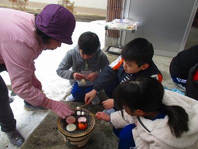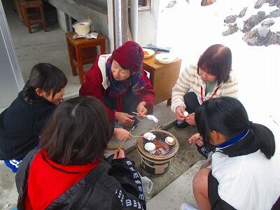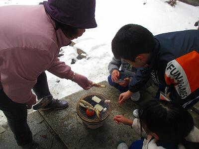 火吹き竹で火力を調節した後、おもちを焼きました。