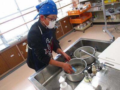 調理器具を洗った後、食材を洗いました。