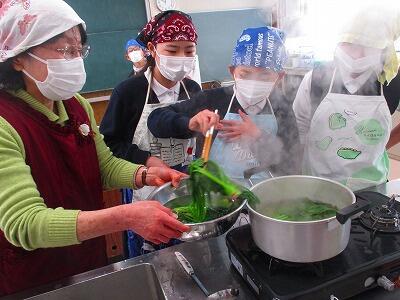 ゆであがったほうれん草は、一口大に切って味付け。