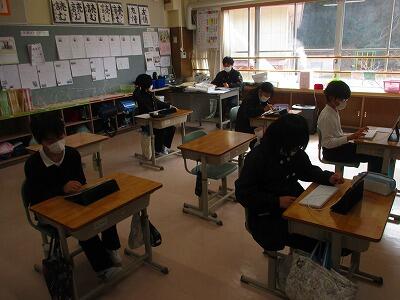 5・6年生は、明日の発表に向けて準備をしています。