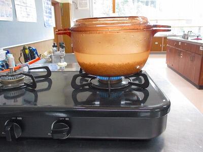耐熱ガラスの鍋を使ってご飯を炊きました。