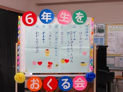 卒業する6年生に在校生が感謝の気持ちを表すための会、6年生を送る会がありました。