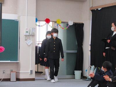 拍手で入場した6年生は、うれしいような、ちょっとだけ恥ずかしいような顔をしていました。
