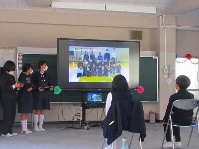 6年生が入学してからの成長の様子を写真や音楽で振り返りました。