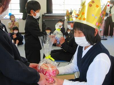 各学年が、心をこめて作ったプレゼントを渡しました。
