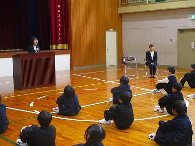お二人からは、草間台小学校での思い出に関するお話と、子ども達への励ましのお言葉をいただきました。