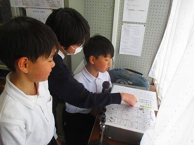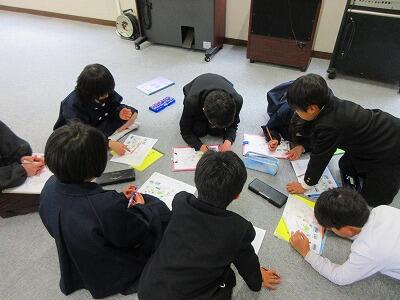 次に、縦割り班ごとに「歩く順番」と「班のめあて」を決めました。