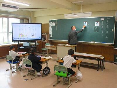 1年生は、ひらがなの「う」を書く学習をしました。