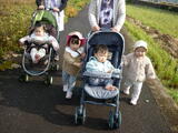 昨夜の冷え込みで、一晩で真っ黄色に色づいた銀杏の木が、子ども達を見守っています。