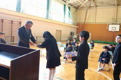 一人ずつ担任が児童の名前を呼び、学年の代表が校長先生から修了証を受け取りました。