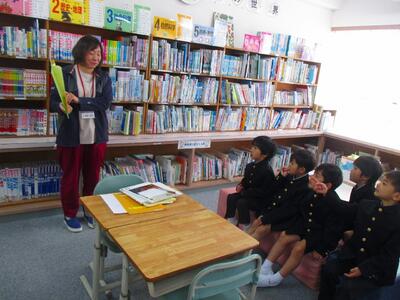 1年生が藤野先生に、絵本の読み聞かせをしていただきました。