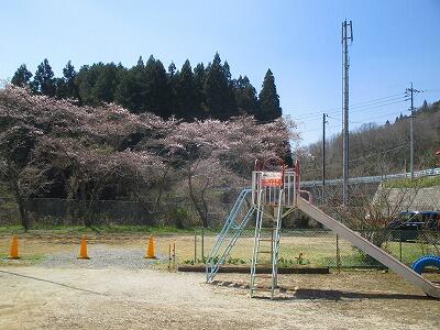 振り返ると旧草間台幼稚園園庭の桜の木が、6分咲きになっていました。