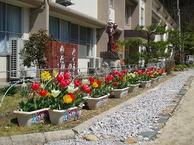 校舎前のチューリップが満開になりました。